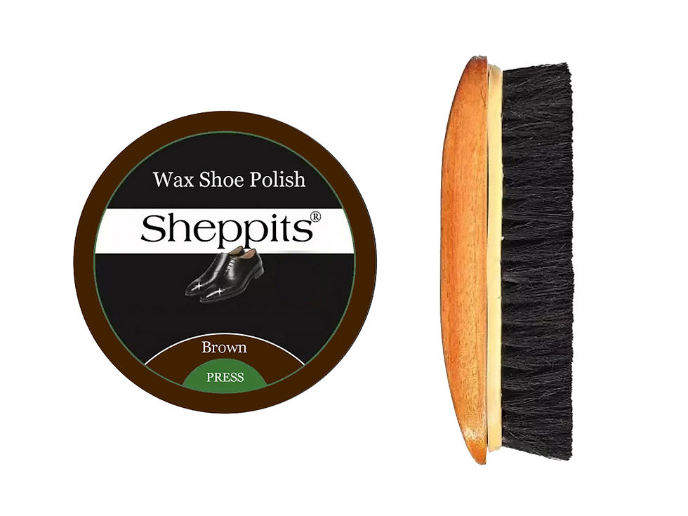 Sheppits Premium Shoe Polish (Brown) & Shoe Polish Brush Combo | Shoe Care Kit
